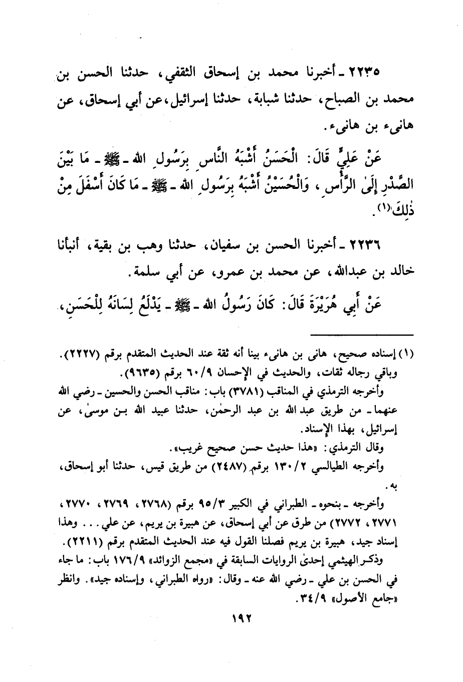 2235 - أخبرنا محمد بن إسحاق الثقفي، حدثنا الحسن بن محمد بن الصباح، حدثنا شبابة، حدثنا إسرائيل، عن أبي إسحاق، عن هانئ بن هانئ.
