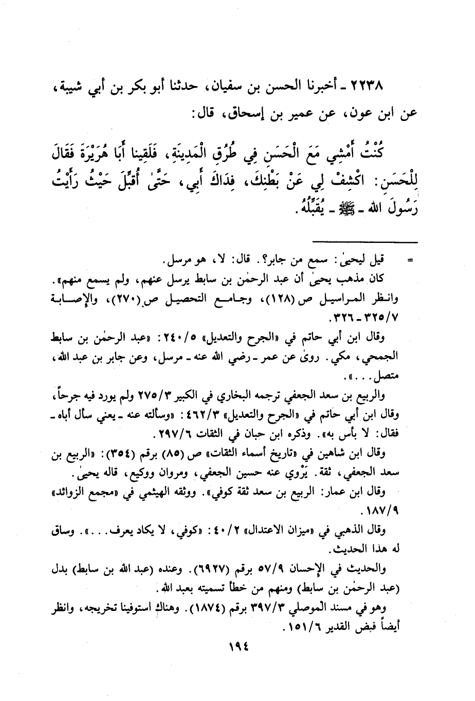 2238 - أخبرنا الحسن بن سفيان، حدثنا أبو بكر بن أبي شيبة، عن ابن عون، عن عمير بن إسحاق، قال: