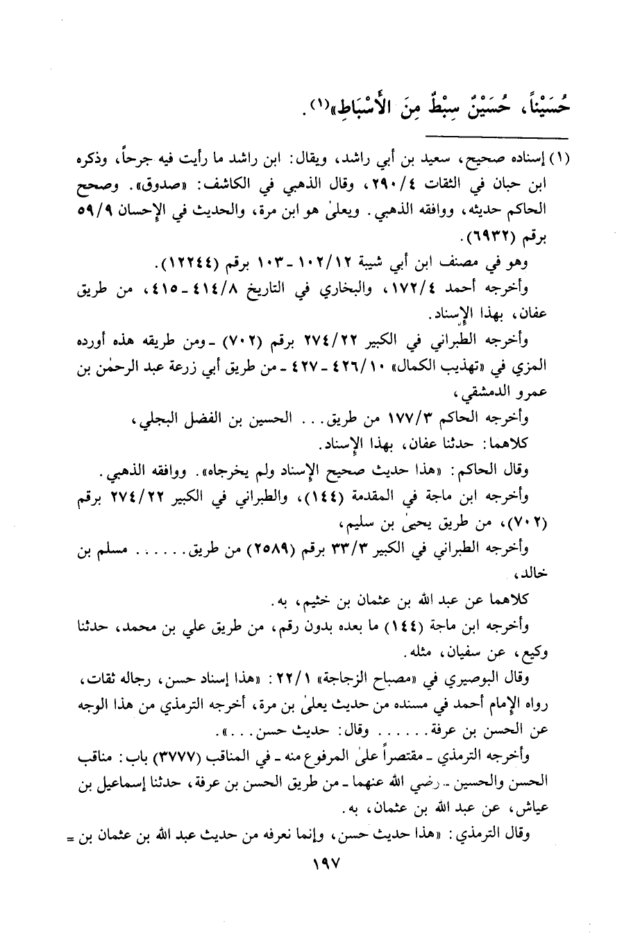 وأخرجه الترمذي- مقتصراً على المرفوع منه- في المناقب (3777) باب: مناقب الحسن والحسين-. رضي الله عنهما- من طريق الحسن بن عرفة، حدثنا إسماعيل بن عياش، عن عبد الله بن عثمان، به.
