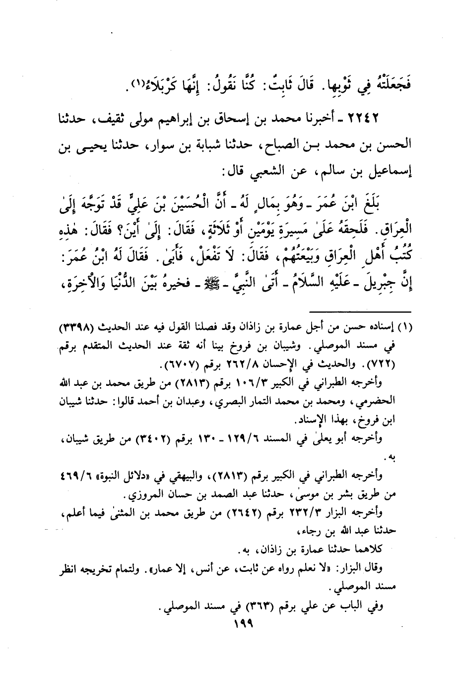 2242 - أخبرنا محمد بن إسحاق بن إبراهيم مولى ثقيف، حدثنا الحسن بن محمد بن الصباح، حدثنا شبابة بن سوار، حدثنا يحيى بن إسماعيل بن سالم، عن الشعبي قال: