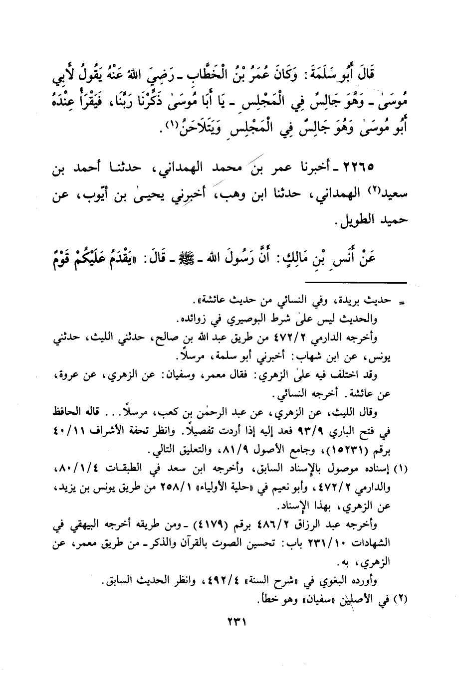 2265 - أخبرنا عمر محمد الهمداني، حدثنا أحمد بن سعيد (¬2) الهمداني، حدثنا ابن وهب، أخبرني يحيى بن أيّوب، عن حميد الطويل.