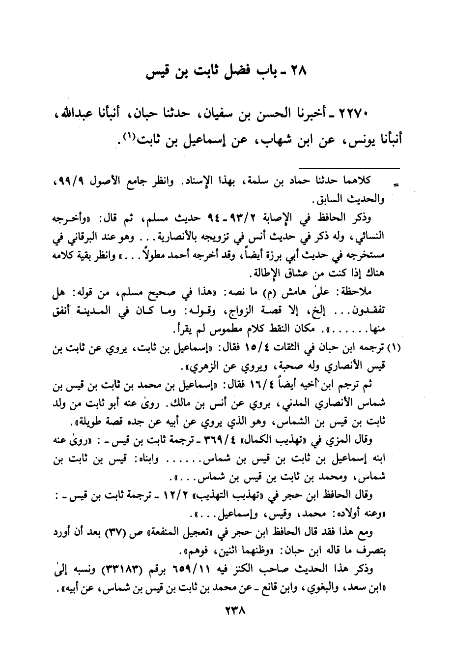 2270 - أخبرنا الحسن بن سفيان، حدثنا حبان، أنبأنا عبد الله، أنبأنا يونس، عن ابن شهاب، عن إسماعيل بن ثابت (¬1).