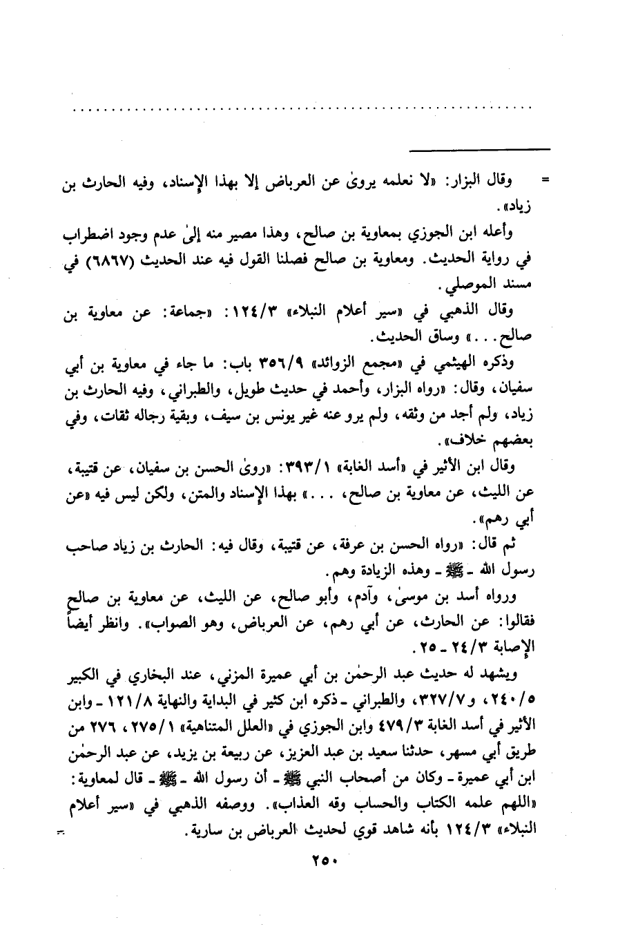 = وقال البزار: "لا نعلمه يروى عن العرباض إلا بهذا الإسناد، وفيه الحارث بن زياد".