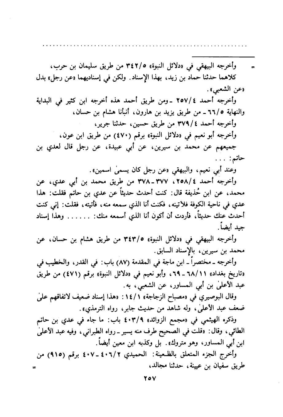 وأخرجه أحمد 4/ 257 - ومن طريق أحمد هذه أخرجه ابن كثير في البداية والنهاية 5/ 66 - من طريق يزيد بن هارون، أنبأنا هشام بن حسان، وأخرجه أحمد 4/ 379 من طريق حسين، حدثنا جرير، وأخرجه أبو نعيم في "دلائل النبوة" برقم (470) من طريق ابن عون، جميعهم عن محمد بن سيرين، عن أبي عبيدة، عن رجل قال لعدي بن حاتم: ...