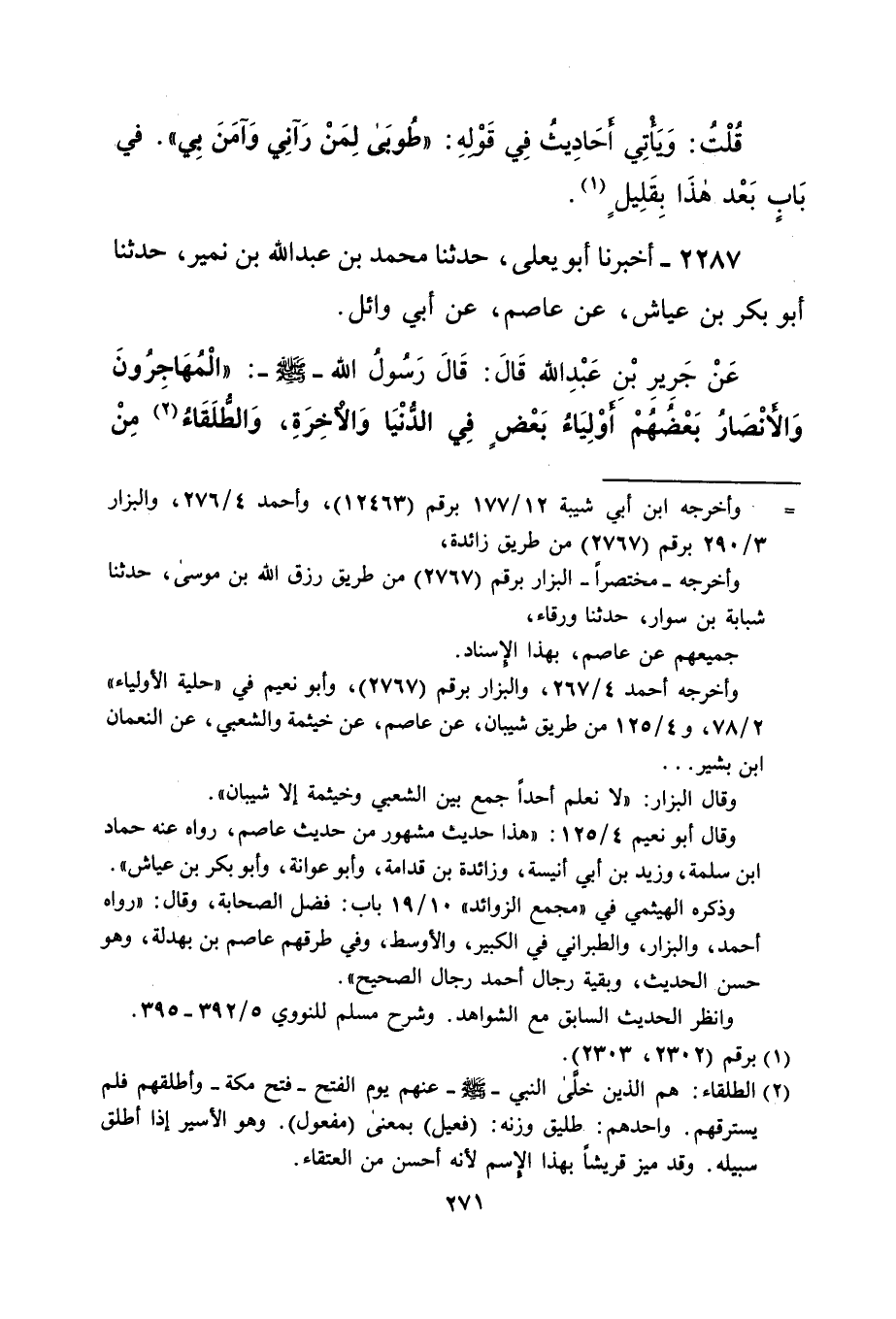 2287 - أخبرنا أبو يعلى، حدثنا محمد بن عبد الله بن نمير، حدثنا أبو بكر بن عياش، عن عاصم، عن أبي وائل.