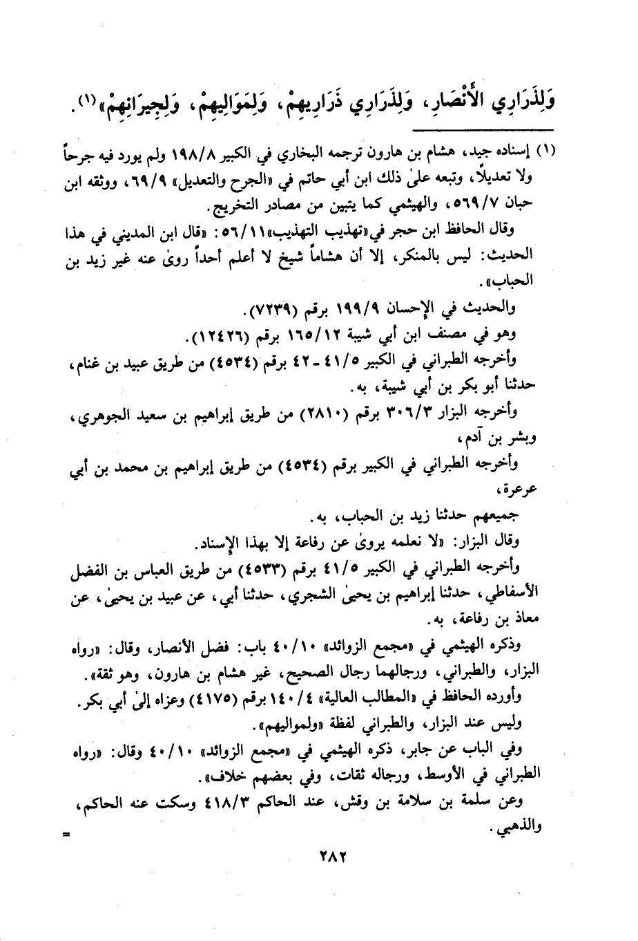 (¬1) إسناده جيد، هشام بن هارون ترجمه البخاري في الكبير 8/ 198 ولم يورد فيه جرحاً ولا تعديلاً، وتبعه على ذلك ابن أبي حاتم في "الجرح والتعديل" 9/ 69، ووثقه ابن حبان 7/ 569، والهيثمي كما يتبين من مصادر التخريج.