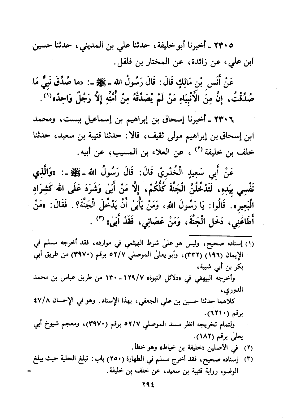 (¬3) إسناده صحيح، فقد أخرج مسلم في الطهارة (250) باب: تبلغ الحلية حيث يبلغ الوضوء رواية قتيبة بن سعيد، عن خلف بن خليفة. =