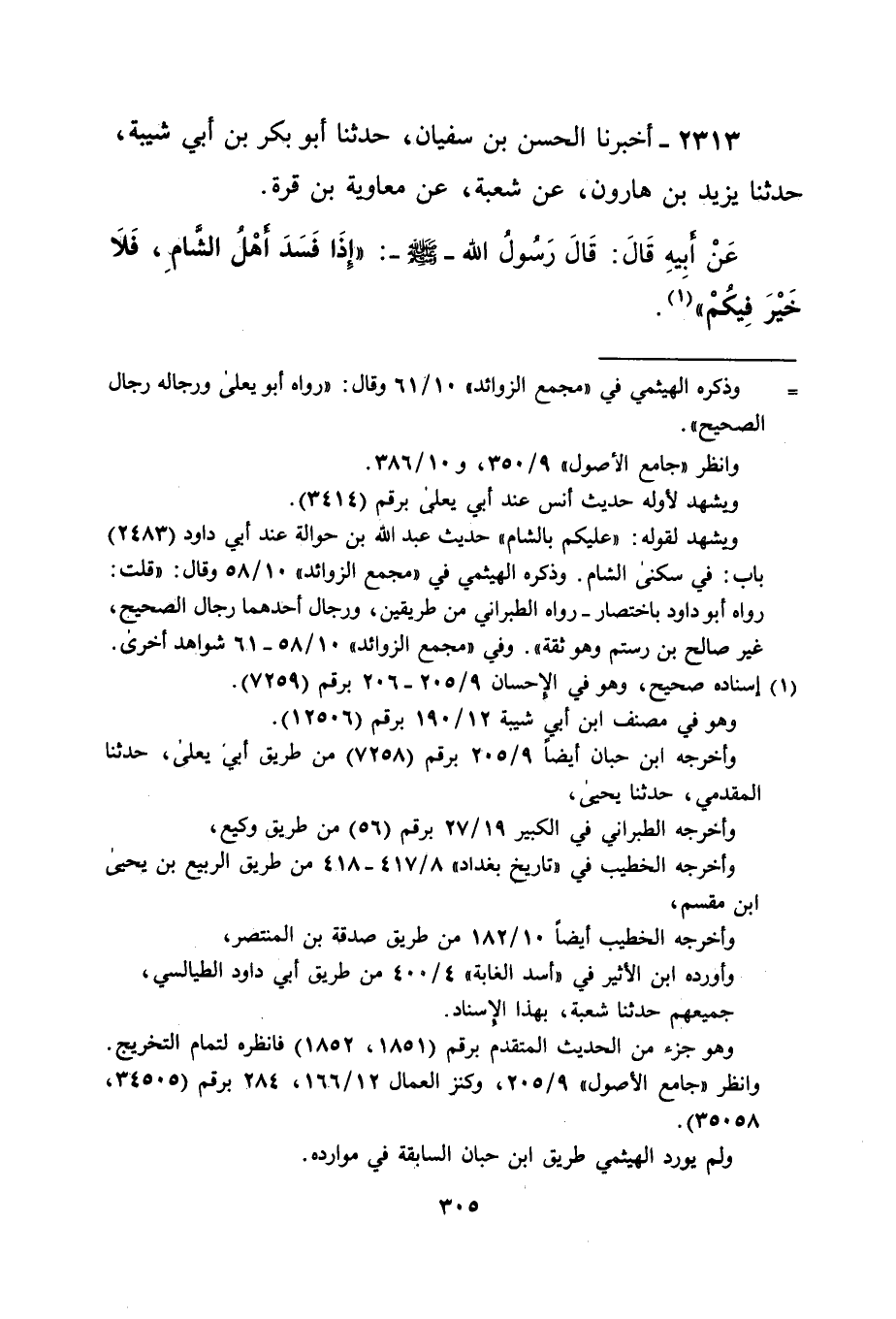 2313 - أخبرنا الحسن بن سفيان، حدثنا أبو بكر بن أبي شيبة، حدثنا يزيد بن هارون، عن شعبة، عن معاوية بن قرة.