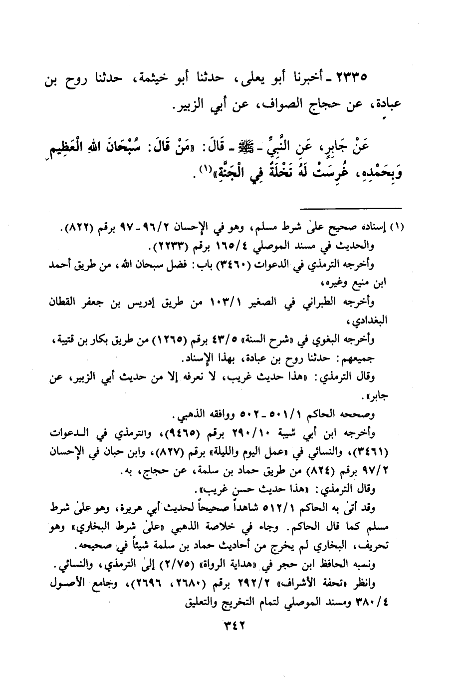 2335 - أخبرنا أبو يعلى، حدثنا أبو خيثمة، حدثنا روح بن عبادة، عن حجاج الصواف، عن أبي الزبير.