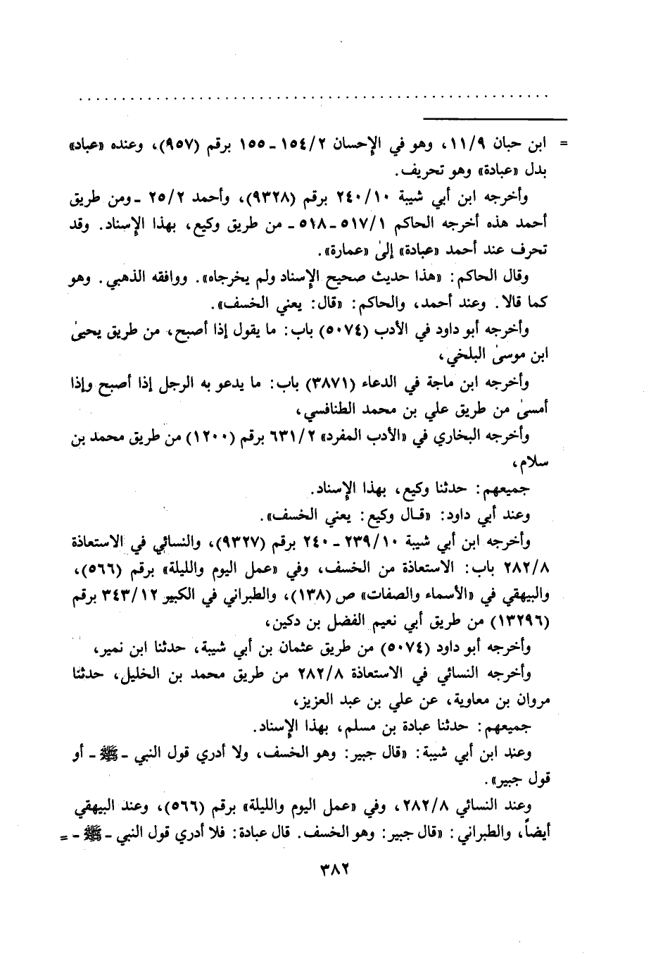 وأخرجه ابن أبي شيبة 10/ 239 - 240 برقم (9327)، والنسائي في الاستعاذة 8/ 282 باب: الاستعاذة من الخسف، وفي "عمل اليوم والليلة" برقم (566)، والبيهقي في "الأسماء والصفات" ص (138)، والطبراني في الكبير 12/ 343 برقم (13296) من طريق أبي نعيم الفضل بن دكين، وأخرجه أبو داود (5074) من طريق عثمان بن أبي شيبة، حدثنا ابن نمير، وأخرجه النسائي في الاستعاذة 8/ 282 من طريق محمد بن الخليل، حدثثا مروان بن معاوية، عن علي بن عبد العزيز، جميعهم: حدثنا عبادة بن مسلم، بهذا الإسناد.