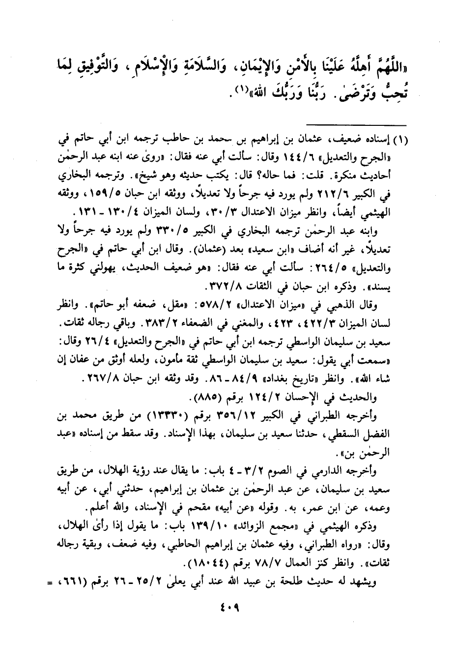 وأخرجه الدارمي في الصوم 2/ 3 - 4 باب: ما يقال عند رؤية الهلال، من طريق سعيد بن سليمان، عن عبد الرحمن بن عثمان بن إبراهيم، حدثني أبي، عن أبيه وعمه، عن ابن عمر، به. وقوله "عن أبيه " مقحم في الإسناد، والله أعلم.