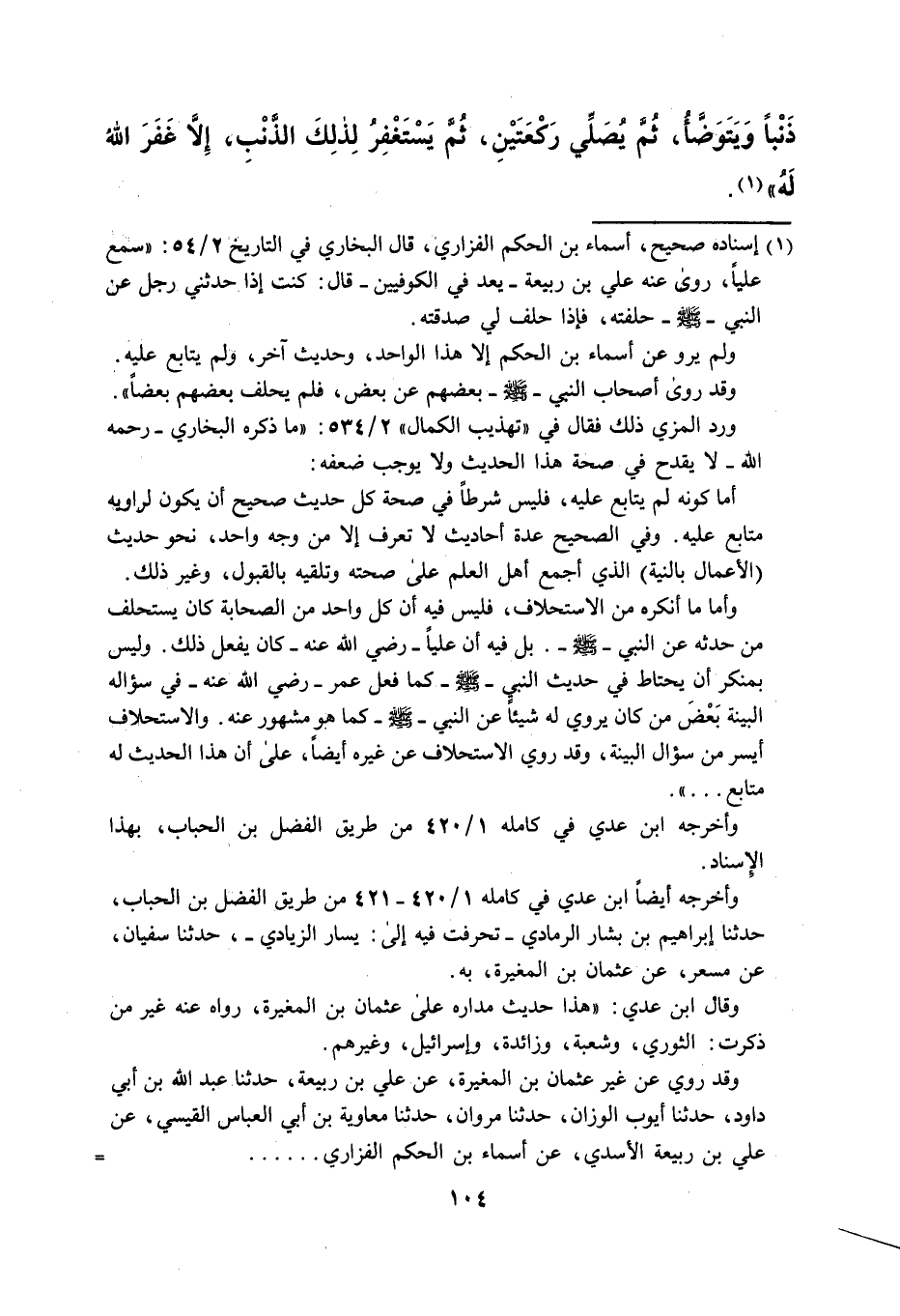 ذَنْباً وَيَتَؤَضَّأُ، ثُمَّ يُصَلِّي رَكْعَتَيْنِ، ثُمَّ يَسْتَغْفِرُ لِذلِكَ الذَّنْب، إِلاَّ غَفَرَ اللهُ لَهُ" (¬1).َ