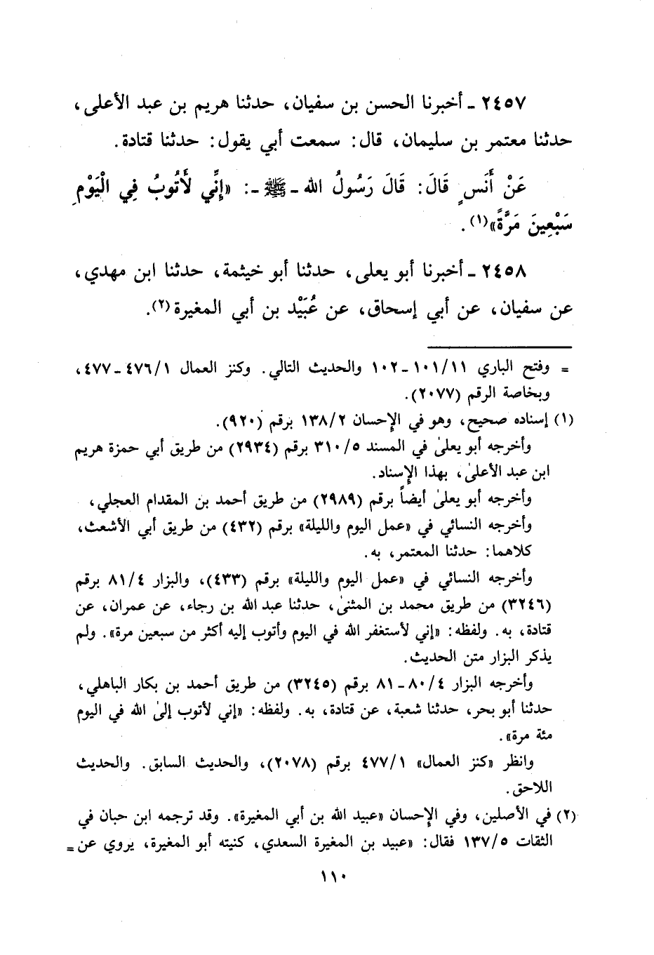 عَنْ أَنَس قَالَ: قَالَ رَسُولُ الله -صلى الله عليه وسلم-: "إنِّي لأَتُوبُ فِي الْيَوْمِ سَبْعِينَ مَرَّةً" (¬1).