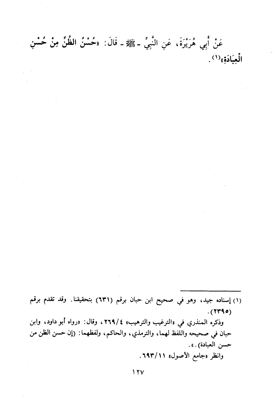 عَنْ أبِي هُرَيْرَةَ، عَنِ النَّبِيِّ -صلى الله عليه وسلم- قَالَ: "حُسْنُ الظَّن مِنْ حُسْنِ الْعِبَادَةِ" (¬1).