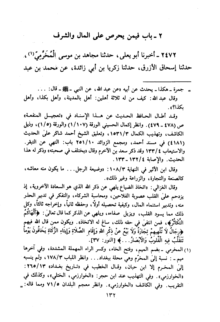 2472 - أخبرنا أبو يعلى، حدثنا مجاهد بن موسى المخرمى (¬1)، حدثنا إسحاق الأزرق، حدثنا زكريا بن أبي زائدة، عن محمدا بن عبد