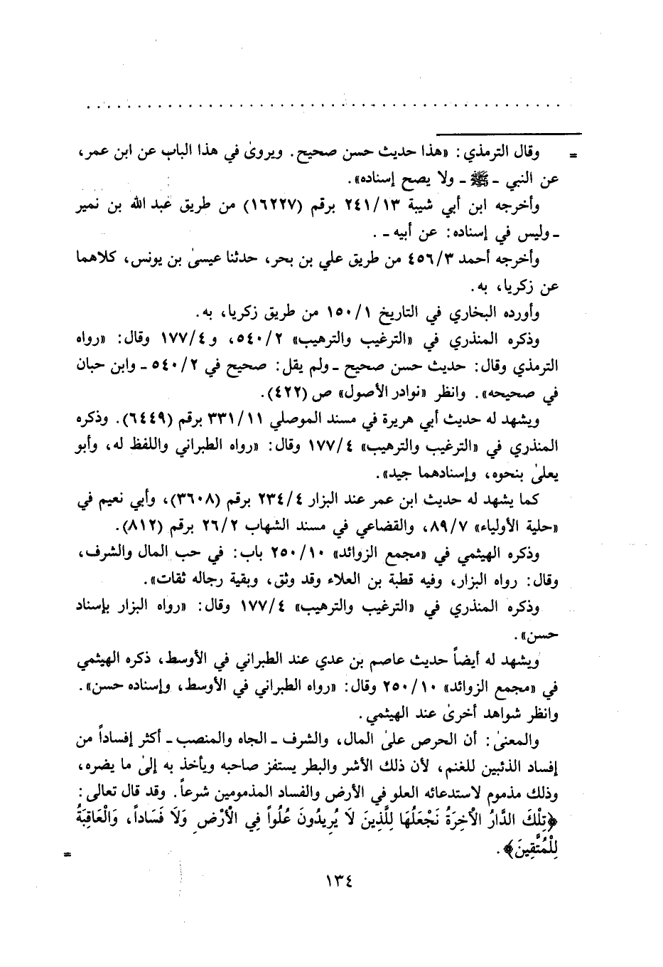وذكره الهيثمي في "مجمع الزوائد"10/ 250 باب: في حب المال والشرف، وقال: رواه البزار، وفيه قطبة بن العلاء وقد وثق، وبقية رجاله ثقات".