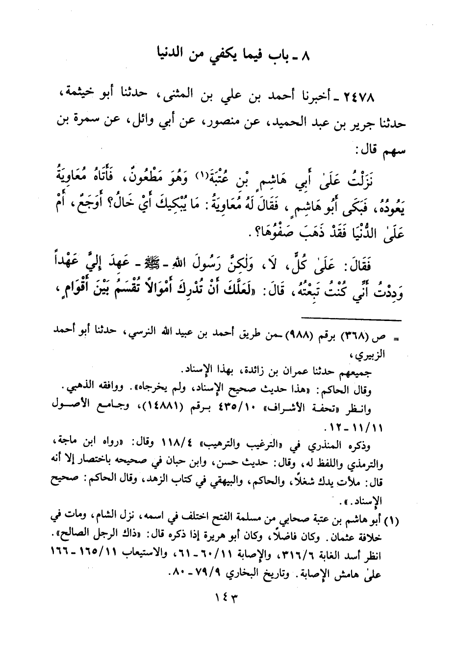 8 - باب فيما يكفي من الدنيا