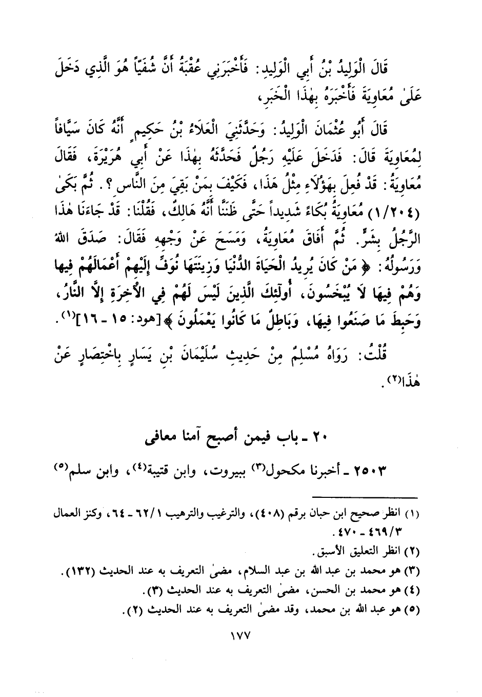 (¬1) انظر صحيح ابن حبان برقم (408)، والترغيب والترهيب 1/ 62 - 64، وكنز العمال 3/ 469 - 470.