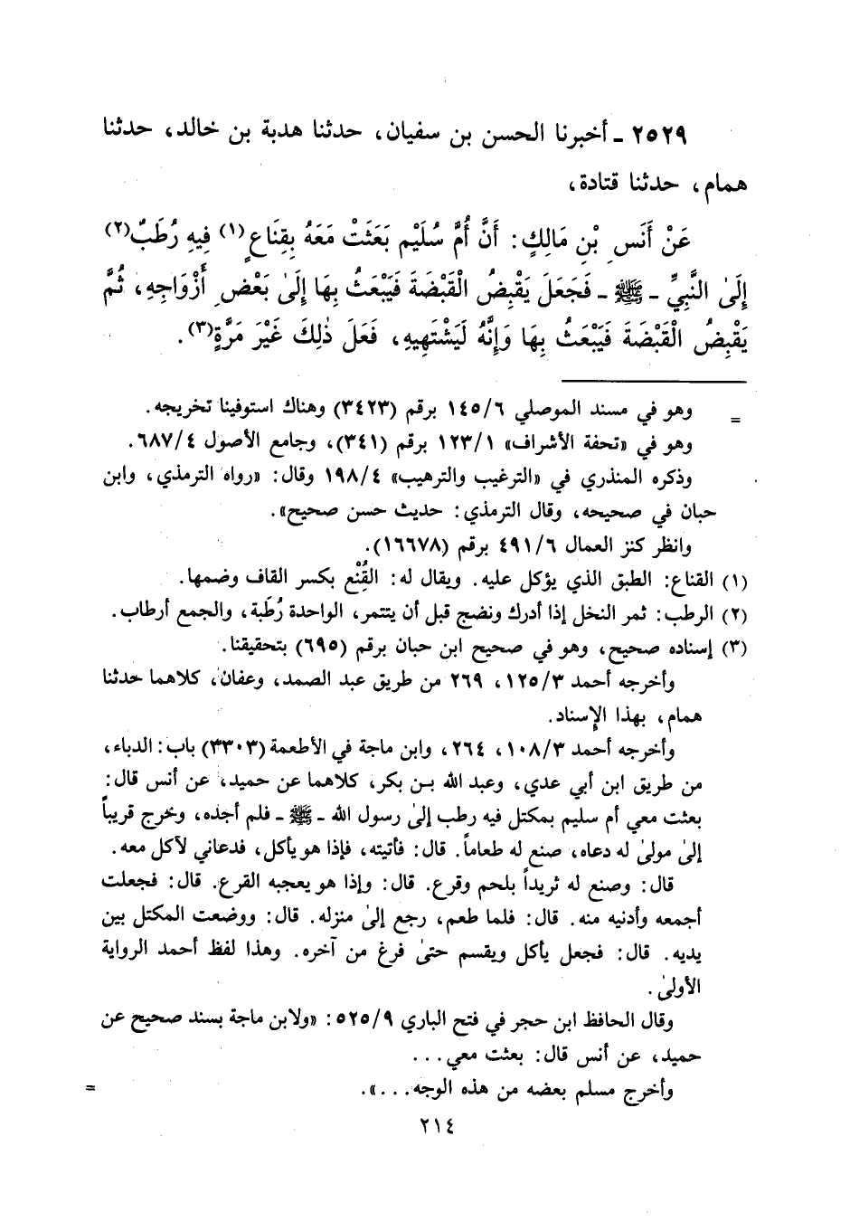 2529 - أخبرنا الحسن بن سفيان، حدثنا هدبة بن خالد، حدثنا همام، حدثنا قتادة،