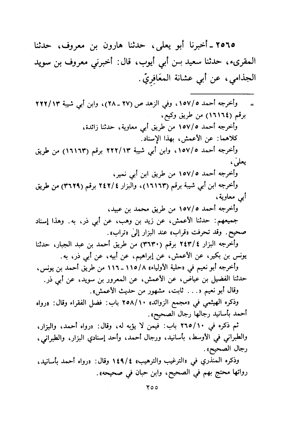 2565 - أخبرنا أبو يعلى، حدثنا هارون بن معروف، حدثنا المقرئ، حدثنا سعيد بن أبي أيوب، قال: أخبرني معروف بن سويد الجذامي، عن أبي عشانة المعَافِرِيٌ.