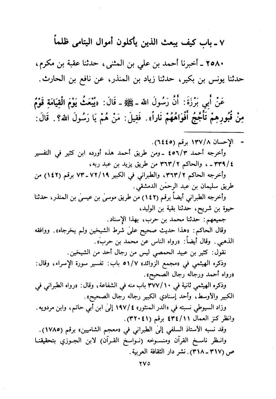 7 - باب كيف يبعث الذين يكون أموال اليتامى ظلماً