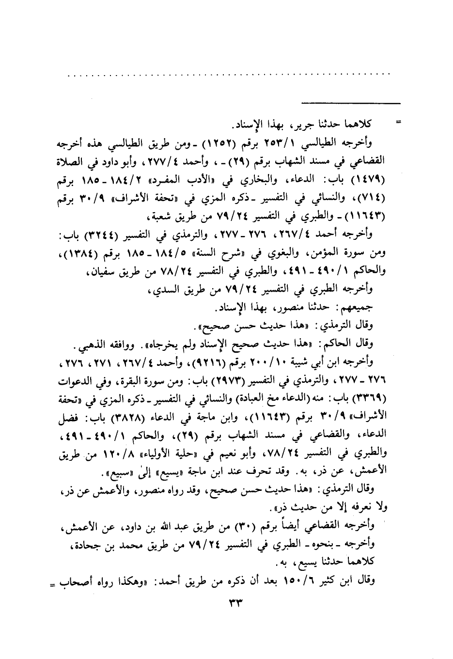 وقال الترمذي: "هذا حديث حسن صحيح، وقد رواه منصور، والأعمش عن ذر، ولا نعرفه إلا من حديث ذر".
