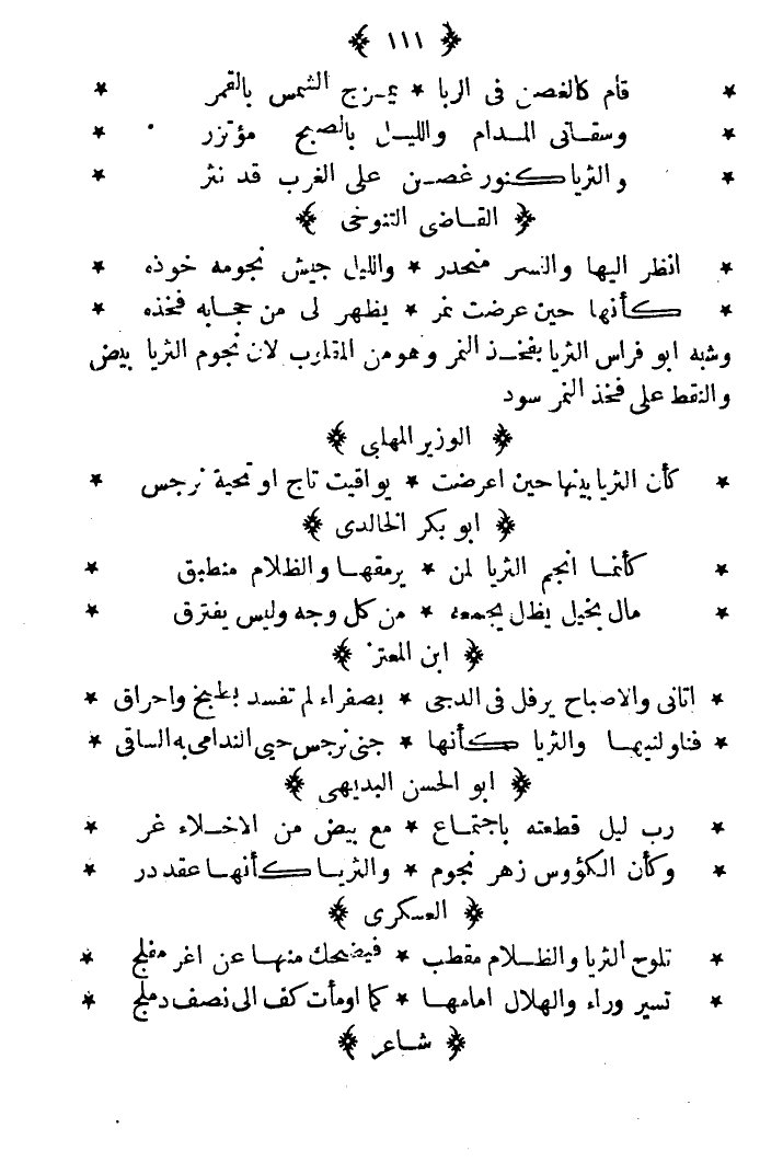 وشبه أبو فراس الثريا بفخذ النمر وهو من المقلوب لأن نجوم الثريا بيض والنقط على فخذ