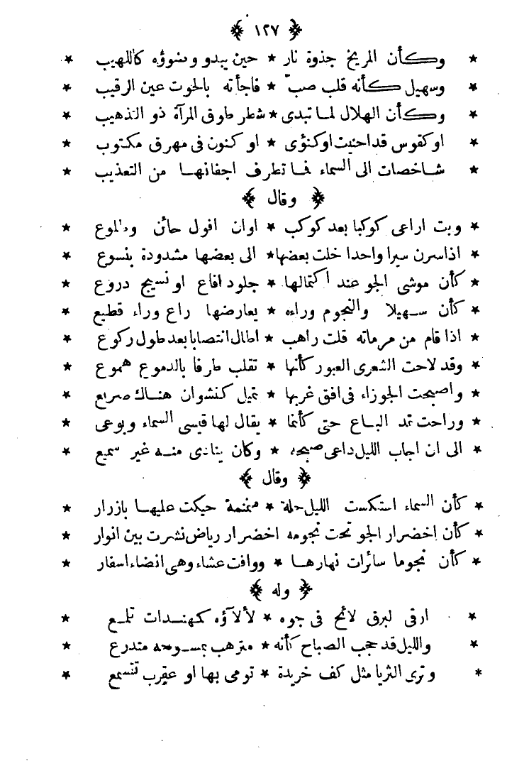 كأن السماء استكست الليل حلة ... منمنمة حيكت عليها بأزرار