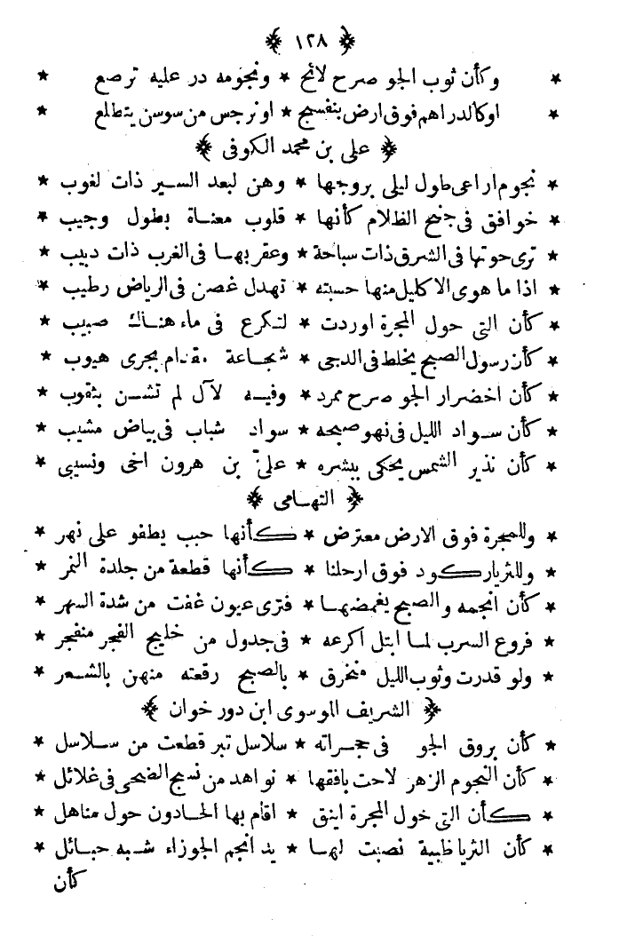 كأن النجوم الزهر لاحت بأفقها ... نواهد من نسج الضحى في غلائل