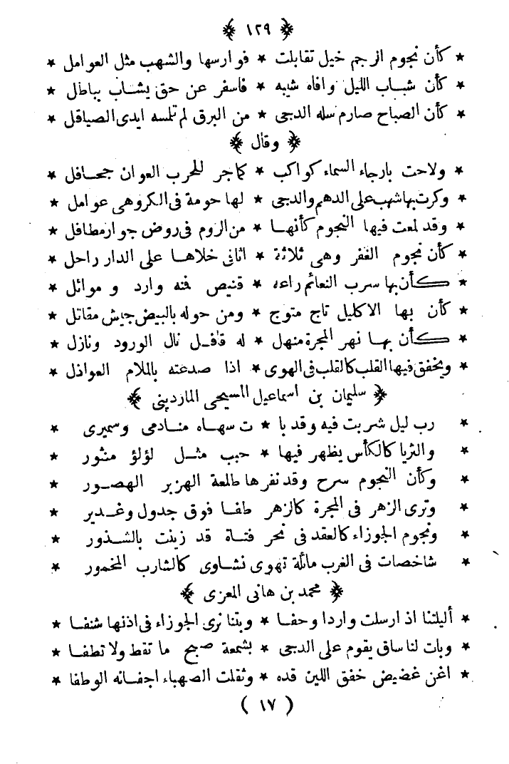 كأن نجوم الرجم خيل تقابلت ... فوارسها والشهب مثل العوامل