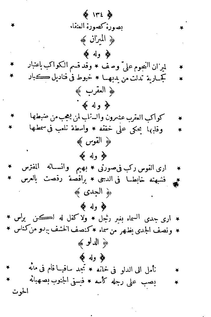 لميزان النجوم علي وصف ... وقد قسم الكواكب باعتبار