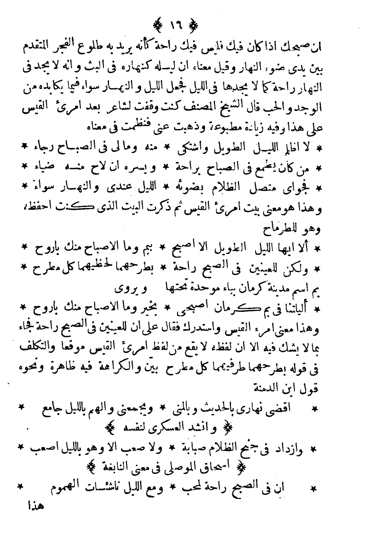 أن صبحك إذا كان فيك راحة كأنه يريد به طلوع الفجر المتقدم بين يدي ضوء النهار وقيل معناه أن ليله كنهاره في البث وأنه لا يجد في النهار راحة كما لا يجدها في الليل فجعل الليل والنهار سواء فيما يكابده من الوجد والحب. قال الشيخ المصنف: كنت وقفت لشاعر بعد امرئ القيس على هذا وفيه زيادة مطبوعة وذهبت عني فنظمت في معناه:
