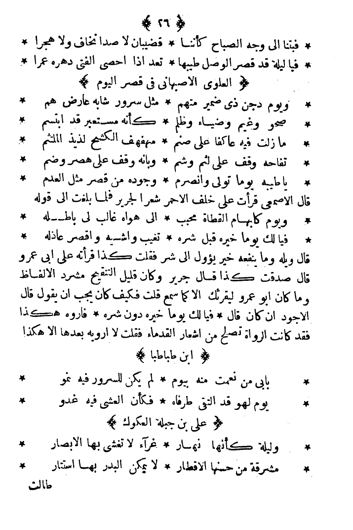 قال الأصمعي: قرأت على خلف الأحمر شعراً لجرير فلما بلغت إلى قوله: