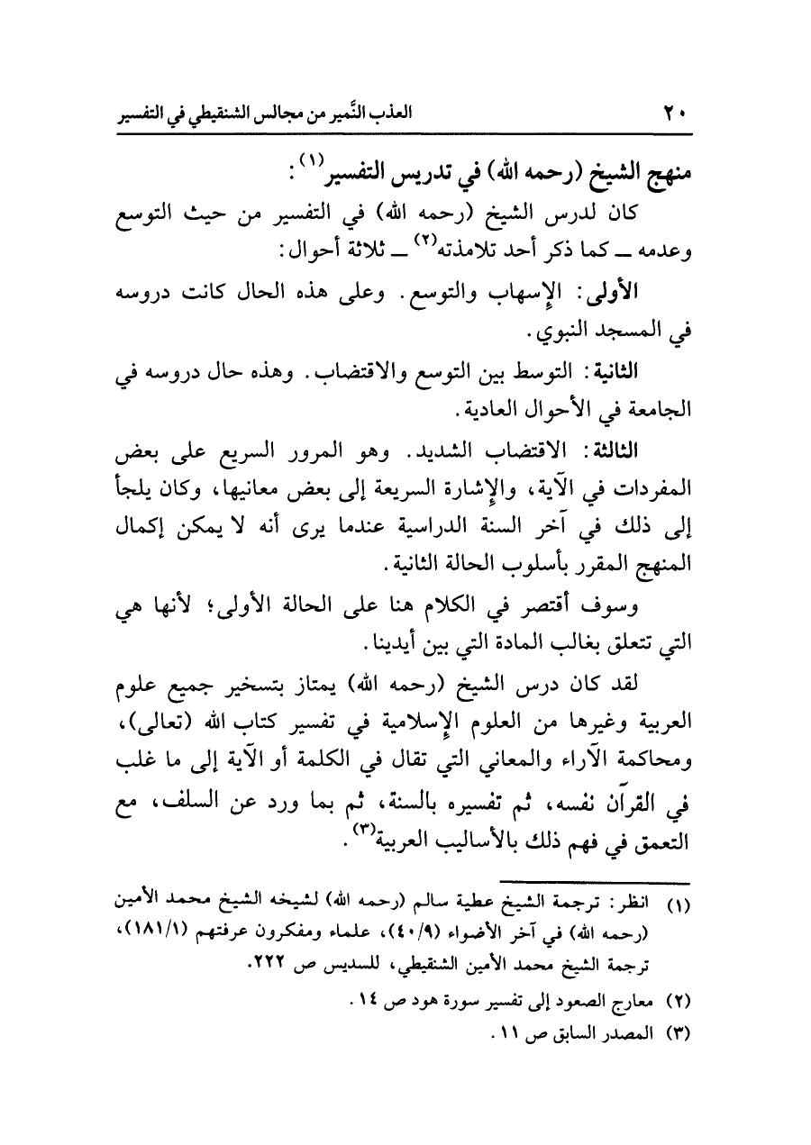 مَنْهَجُ الشَّيْخِ (رحمه الله) فِي تَدْرِيسِ التَّفْسِيرِ (¬١):