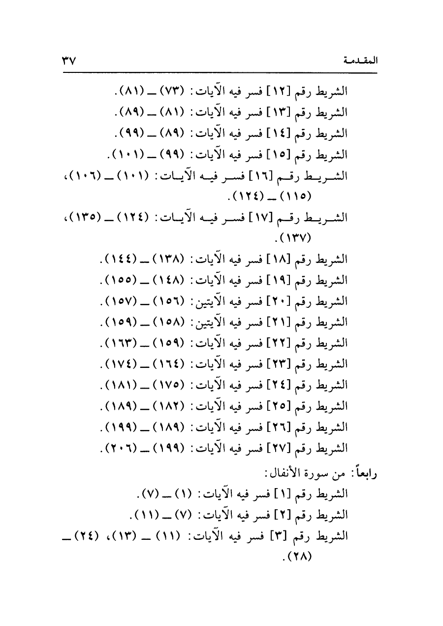 الشريطُ رقمُ [١٧] فَسَّرَ فيه الآياتِ: (١٢٤) _ (١٣٥)، (١٣٧).