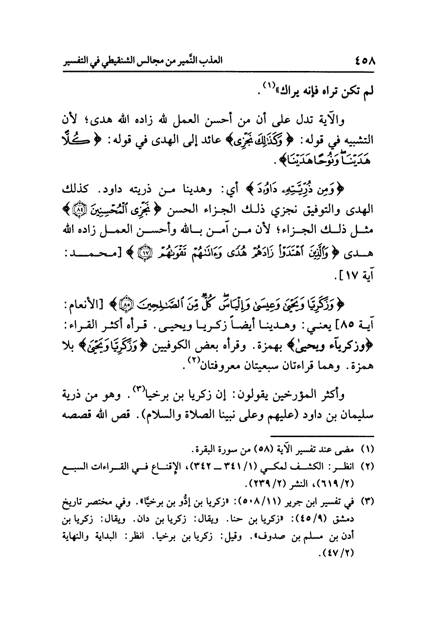 (¬٣) في تفسير ابن جرير (١١/ ٥٠٨): «زكريا بن إدُّو بن برخيَّا». وفي مختصر تاريخ دمشق (٩/ ٥٤): «زكريا بن حنا. ويقال: زكريا بن دان. ويقال: زكريا بن أدن بن مسلم بن صدوف». وقيل: زكريا بن برخيا. انظر: البداية والنهاية (٦/ ٤٧).