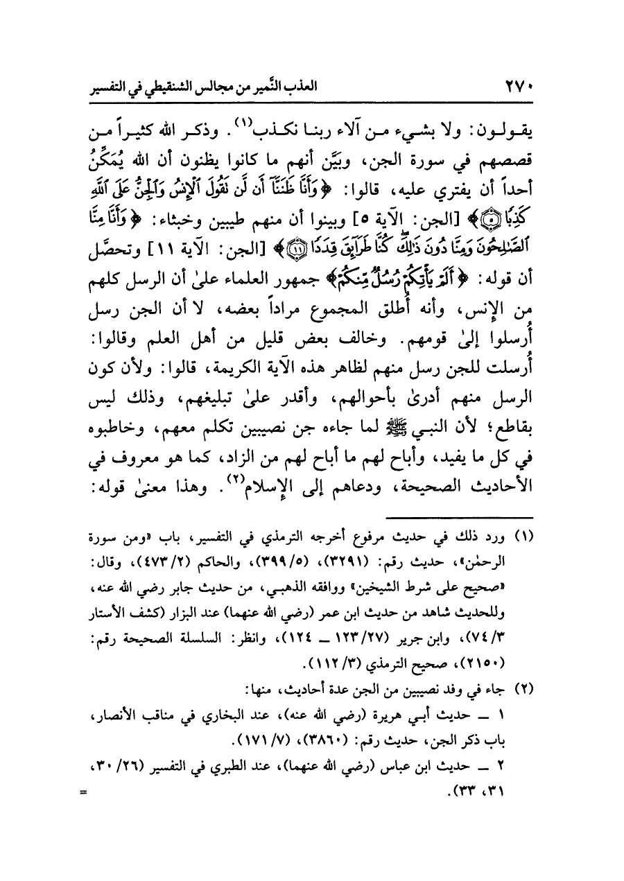 (¬٢) جاء في وفد نصيبين من الجن عدة أحاديث، منها: