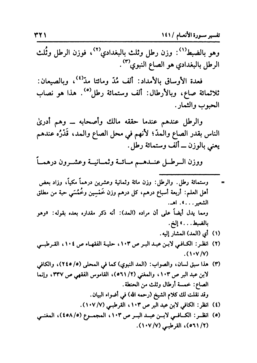 وهو بالضبط (¬١): وزن رطل وثلث بالبغدادي (¬٢)، فوزن الرطل وثُلث الرطل بالبغدادي هو الصاع النبوي (¬٣).