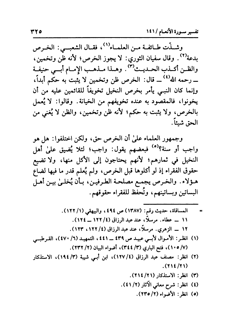() انظر: الأموال لأبي عبيد ص ٤٣٩ - ٤٤١، التمهيد (٦/ ٤٧٠)، القرطبي (٧/ ١٠٥)، فتح الباري (٣/ ٣٤٤)، أضواء البيان (٢/ ٢٣٢).