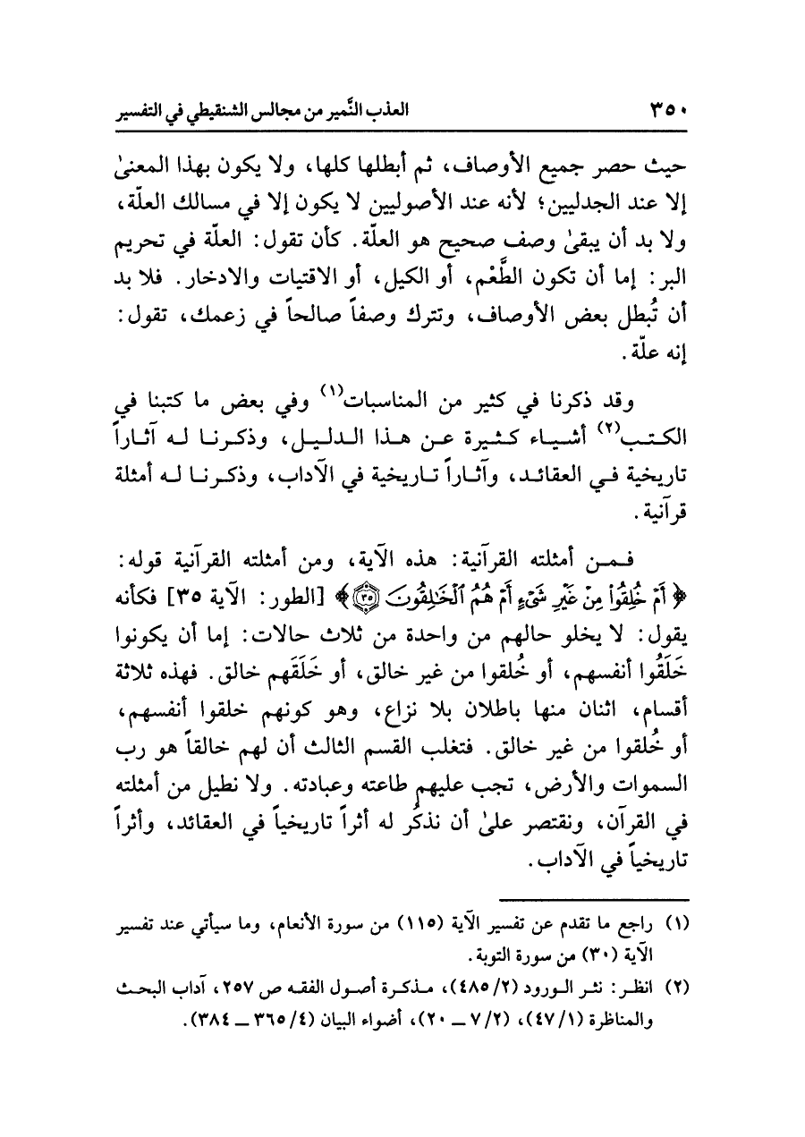 (¬٢) انظر: نثر الورود (٢/ ٤٨٥)، مذكرة أصول الفقه ص ٢٥٧، آداب البحث والمناظرة (١/ ٤٧)، (٢/ ٧ - ٢٠) أضواء البيان (٤/ ٣٦٥ - ٣٨٤).