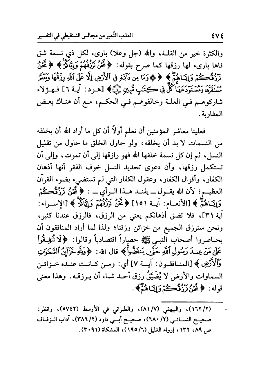 والكثرة خَيْرٌ مِنَ القلة، والله (جل وعلا) بارئ لكل ذي نسمة شق فاها بارئ لها رزقها كما صَرَّحَ بقوله: {نَّحْنُ نَرْزُقُهُمْ وَإِيَّاكُم} {نَّحْنُ نَرْزُقُكُمْ وَإِيَّاهُمْ} {وَمَا مِن دَآبَّةٍ فِي الأَرْضِ إِلَّا عَلَى اللهِ رِزْقُهَا وَيَعْلَمُ مُسْتَقَرَّهَا وَمُسْتَوْدَعَهَا كُلٌّ فِي كِتَابٍ مُّبِينٍ} [هود: آية ٦] فهؤلاء شاركوهم في العلة وخالفوهم في الحكم، مع أن هناك بعض المقاربة.