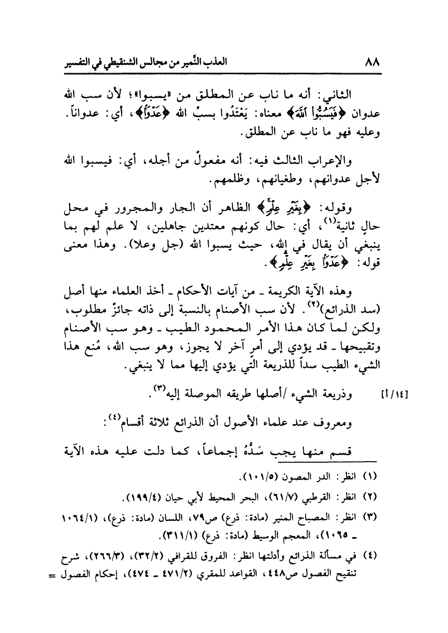 (¬٤) في مسألة الذرائع وأدلتها انظر: الفروق للقرافي (٢/ ٣٢)، (٣/ ٢٦٦)، شرح تنقيح الفصول ص٤٤٨، القواعد للمقري (٢/ ٤٧١ - ٤٧٤)، إحكام الفصول ص٥٦٧ - ٥٧١، تفسير القرطبي (٢/ ٥٧ - ٦٠)، الفتاوى (٢٣/ ١٨٦ - ١٨٧)، إعلام الموقعين (٣/ ١٣٥ - ١٥٩)، إغاثة اللهفان (١/ ٣٦١ - ٣٦٧)، تهذيب سنن أبي داود (٥/ ١٠٢)، الموافقات (٤/ ١٩٨ - ٢٠٠)، البحر المحيط للزركشي (٦/ ٨٢ - ٨٦)، فتح الباري (١٠/ ٤٠٤)، إرشاد الفحول ص٢٤٦، نثر الورود (٢/ ٥٧٥).
