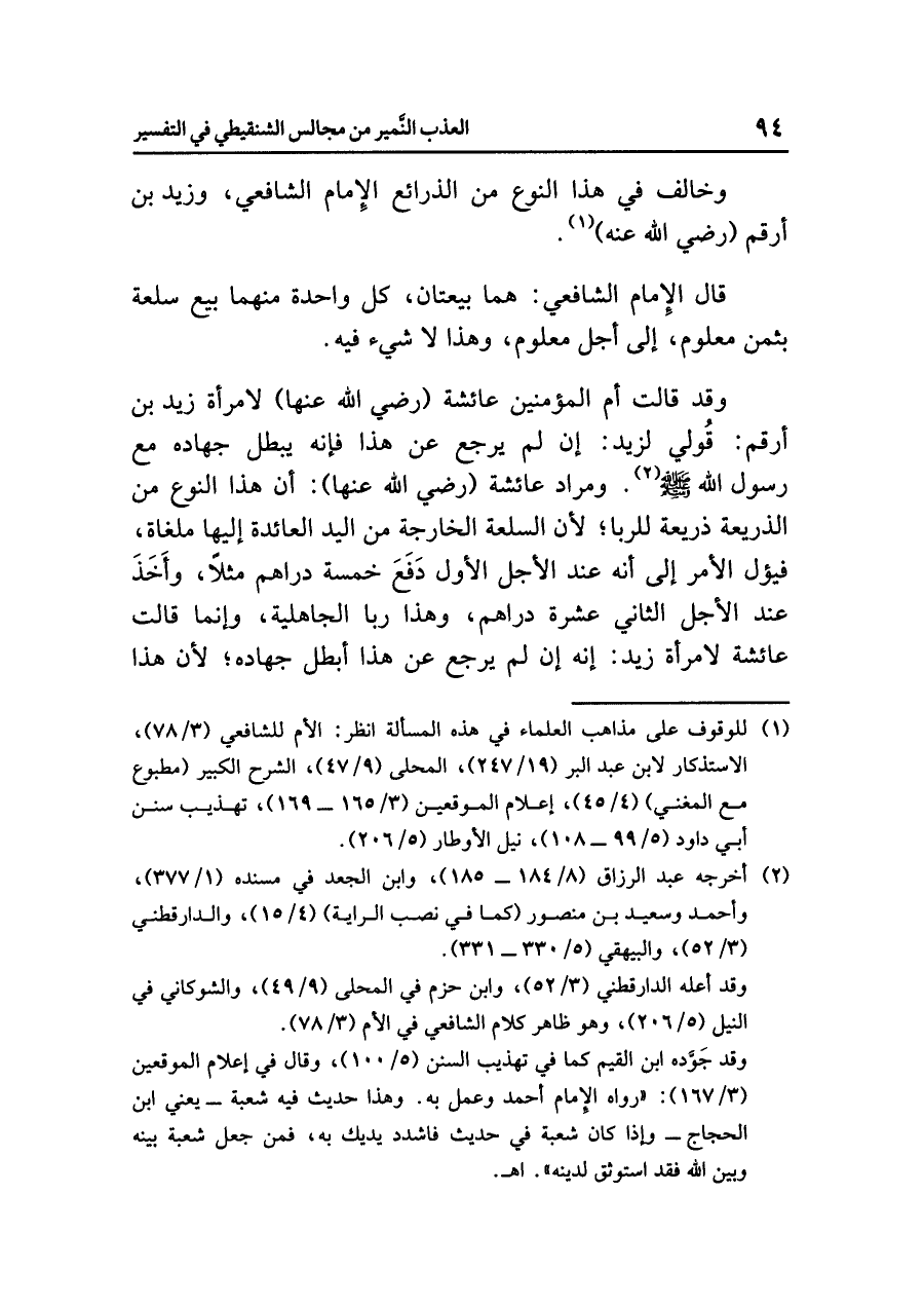 وَخَالَفَ في هذا النوعِ من الذرائعِ الإمامُ الشافعيُّ، وزيدُ بنُ أرقمَ (رضي الله عنه) (¬١).