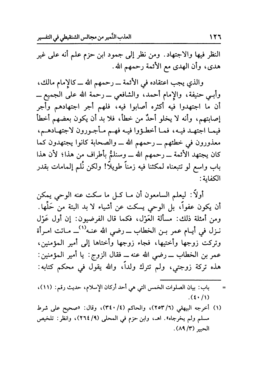 النظر فيها والاجتهاد، وَمَنْ نَظَر إلى جمود ابن حزم علم أنه على غير هدى، وأن الهدى مع الأئمة رحمهم الله.