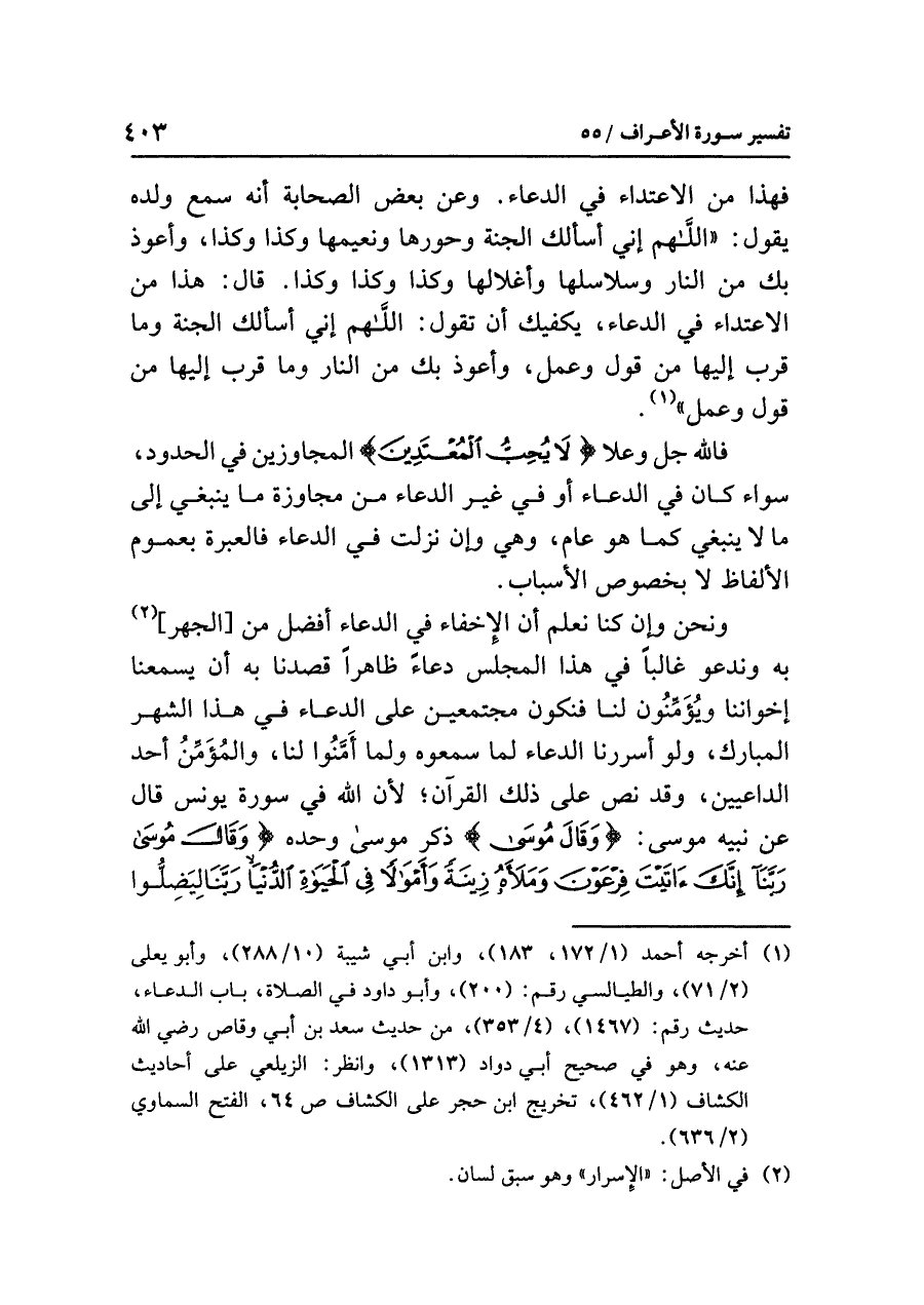 (¬١) أخرجه أحمد (١/ ١٧٢، ١٨٣)، وابن أبي شيبة (١٠/ ٢٨٨)، وأبو يعلى (٢/ ٧١)، والطيالسي رقم (٢٠٠)، وأبو داود في الصلاة، باب الدعاء .. حديث رقم (١٤٦٧)، (٤/ ٣٥٣)، من حديث سعد بن أبي وقاص رضي الله عنه. وهو في صحيح أبي داود (١٣١٣)، وانظر: الزيلعي على أحاديث الكشاف (١/ ٤٦٢)، تخريج ابن حجر على الكشاف ص٦٤، الفتح السماوي (٢/ ٦٣٦).