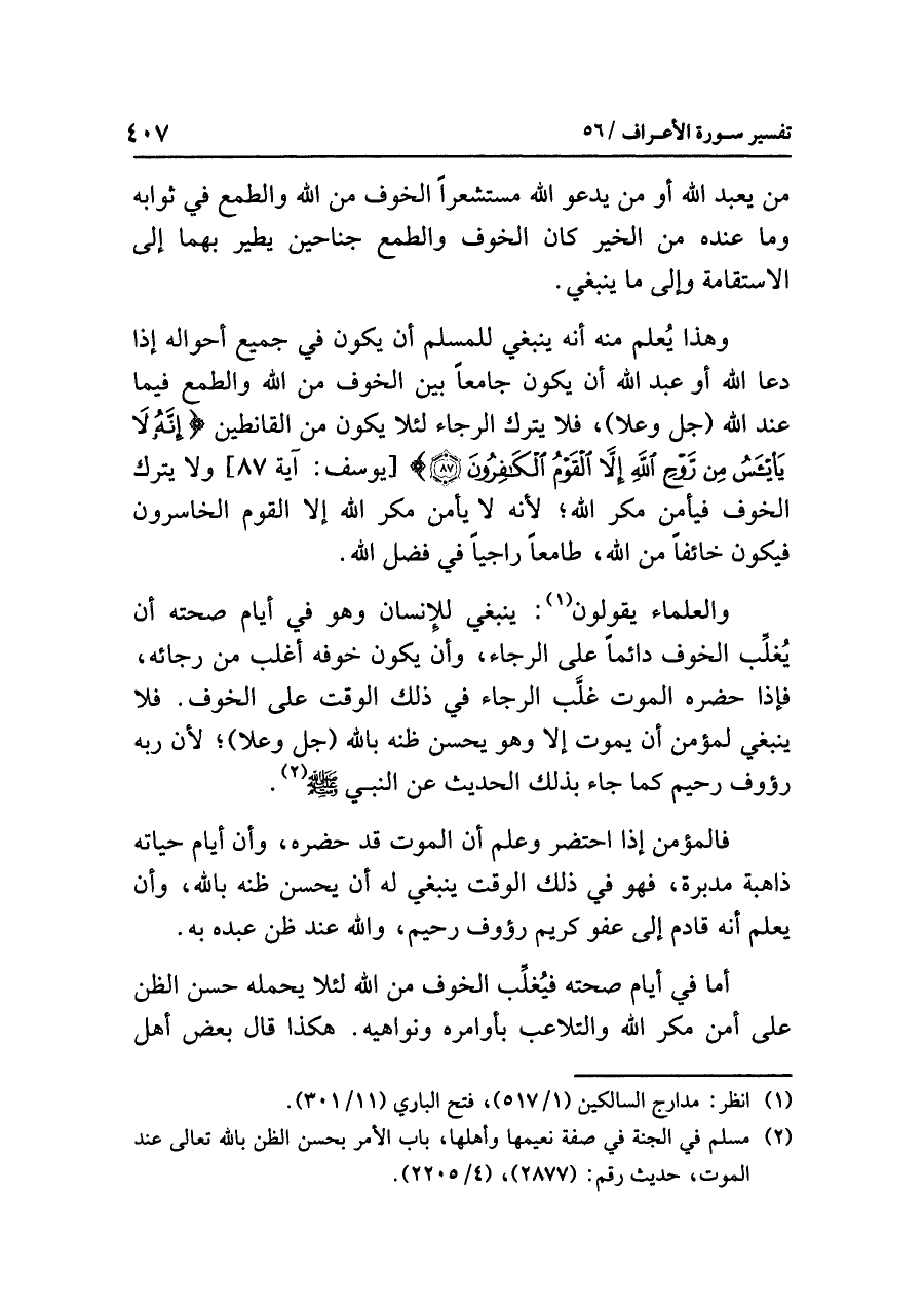 (¬١) انظر: مدارج السالكين (١/ ٥١٧)، فتح الباري (١١/ ٣٠١).