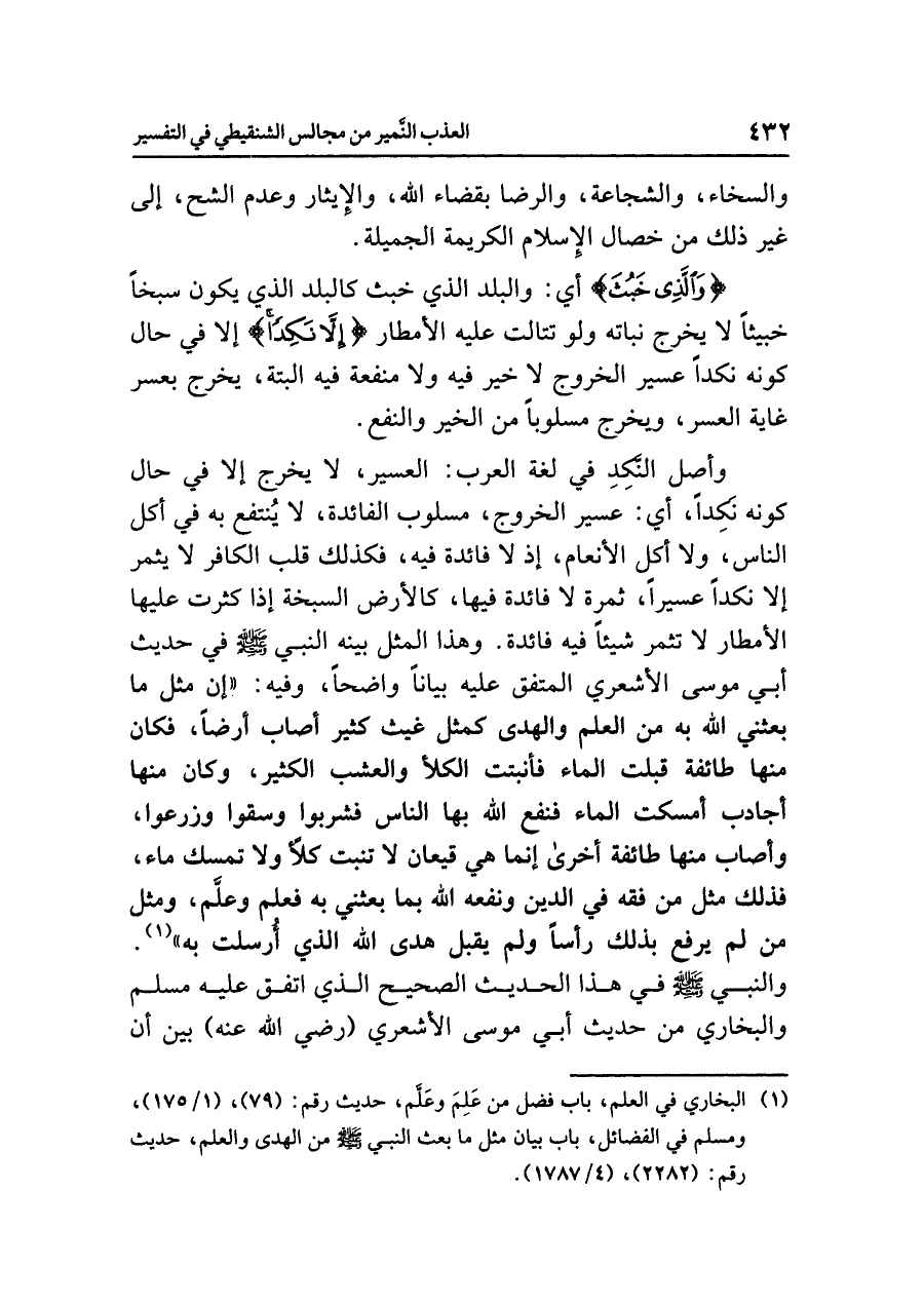 (¬١) البخاري في العلم، باب فضل من عَلِمَ وعَلَّم. حديث رقم (٧٩)، (١/ ١٧٥). ومسلم في الفضائل، باب بيان مثل ما بعث النبي صلى الله عليه وسلم من الهدى والعلم. حديث رقم (٢٢٨٢)، (٤/ ١٧٨٧).