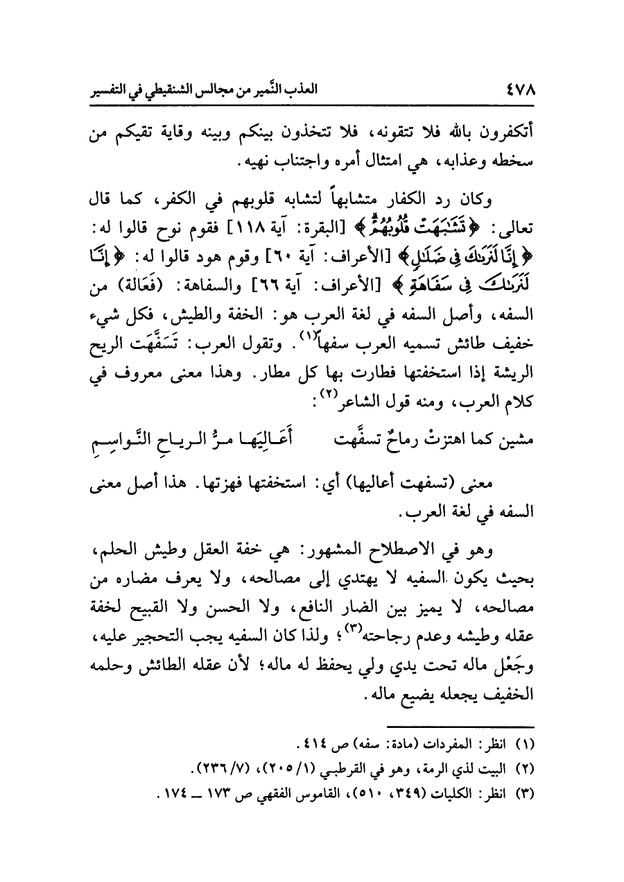 (¬١) انظر: المفردات (مادة: سفه) ص٤١٤.