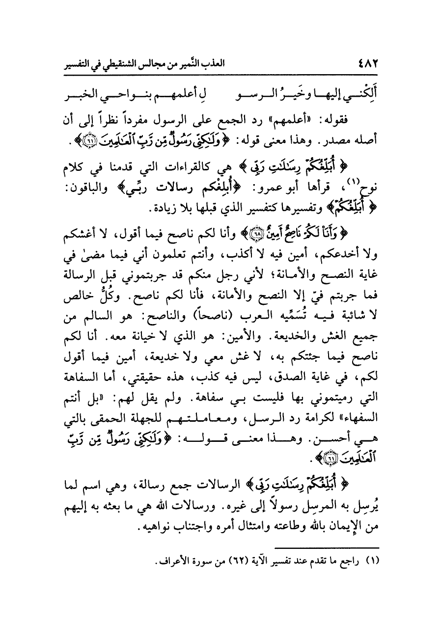 (¬١) راجع ما تقدم عند تفسير الآية (٦٢) من سورة الأعراف.