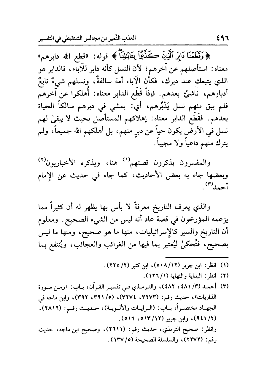 والمفسرونَ يذكرونَ قِصَّتَهُمْ (¬١) هنا، ويذكرُه الأخباريون (¬٢) وبعضُها جاء به بعضُ الأحاديثِ، كما جاء في حديثٍ عن الإمامِ أحمدَ (¬٣).